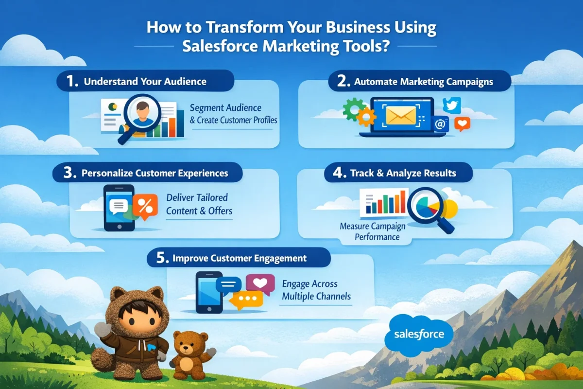 Salesforce provides various marketing tools to help businesses build killer customer relationships. and improve company performance. from email automation to data-driven messenger pillow, marketing tools empower users to create fully integrated customer engagement strategies. and marketing cloud provides a complete package consisting of intelligence. and companies that understand the behavior of the customers and understand their needs and requirements, are helped in reaching their goals.